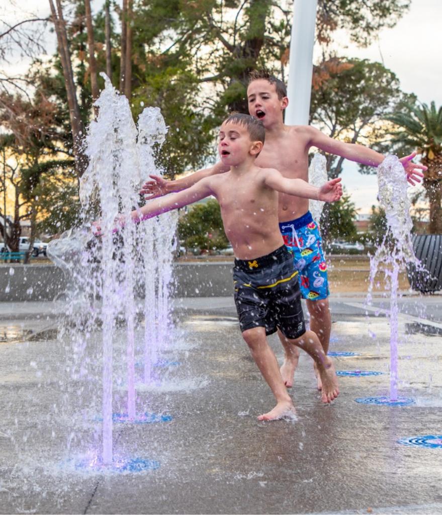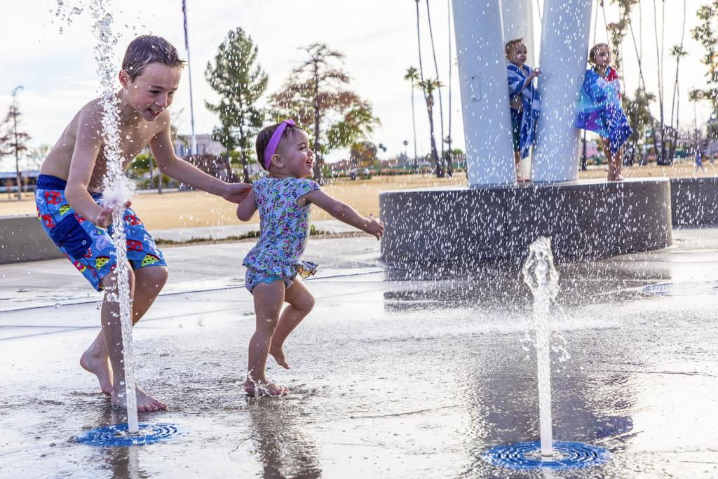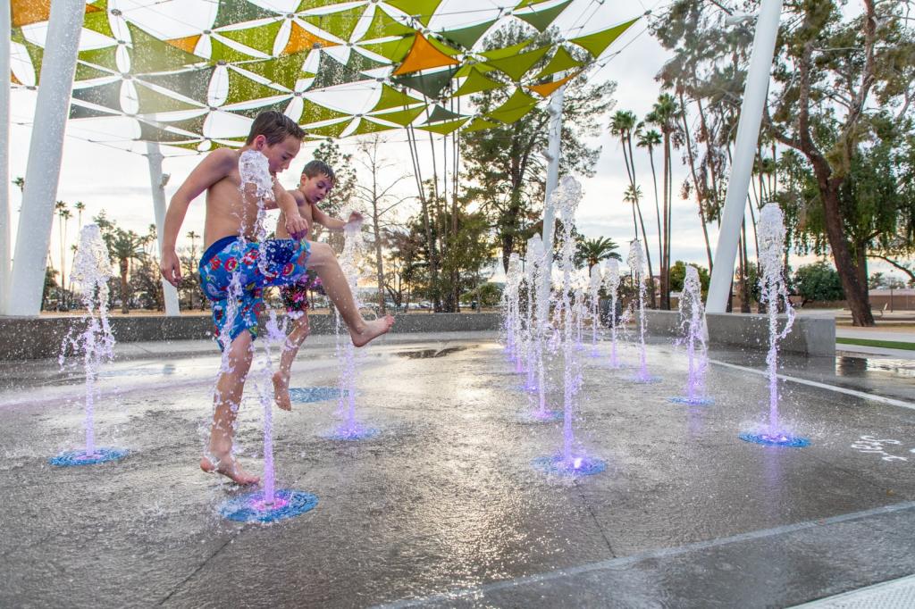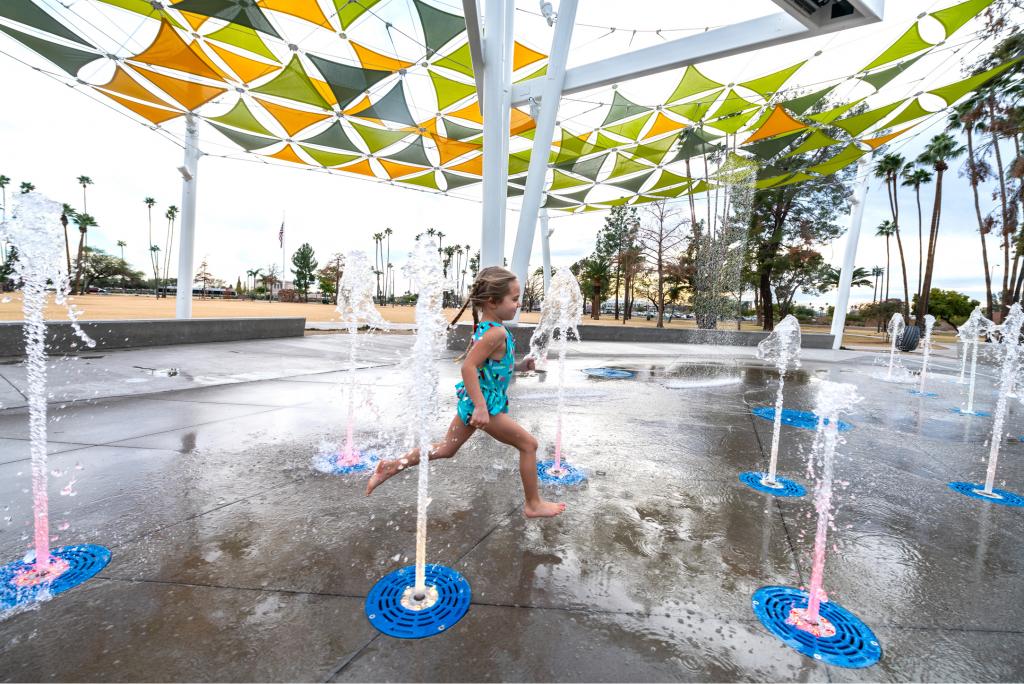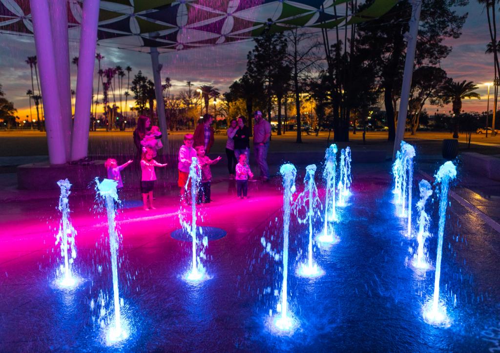 CoreoPlay™ is a cluster of dancing water jets and light that create an immersive play experience during the day and into the night.