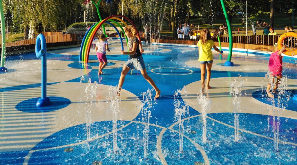 - Sus dinámicos chorros de agua ofrecen diversas oportunidades de juego