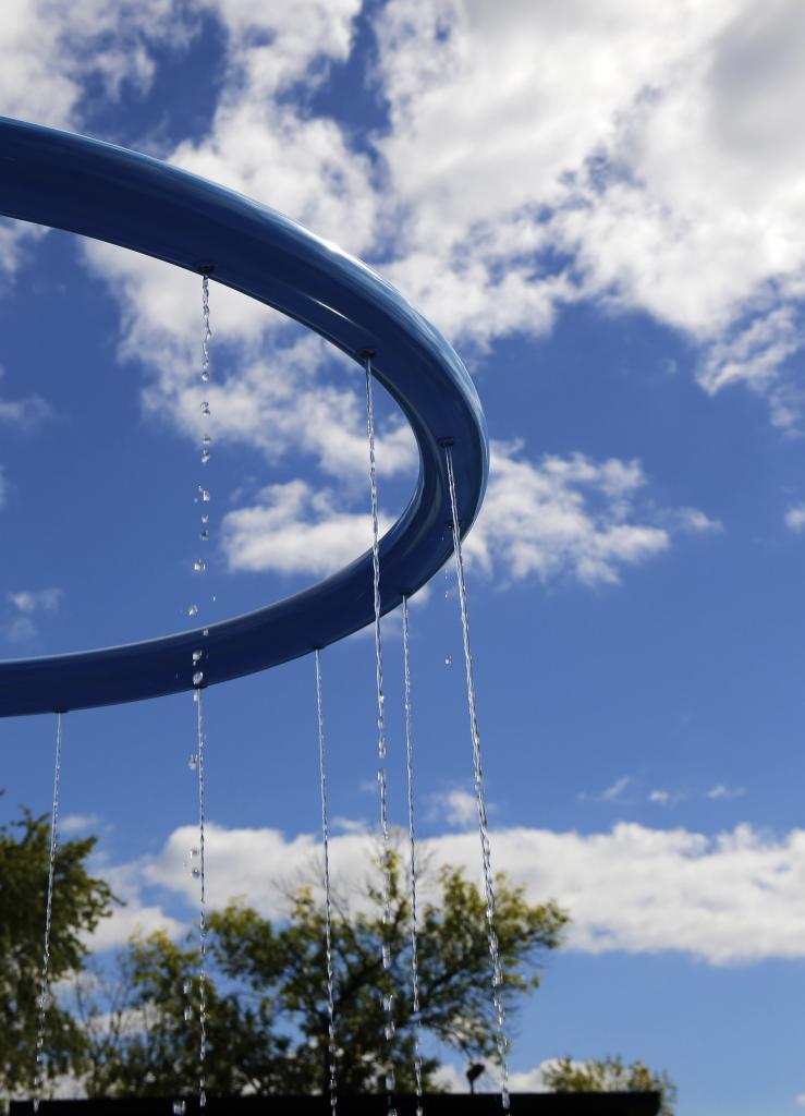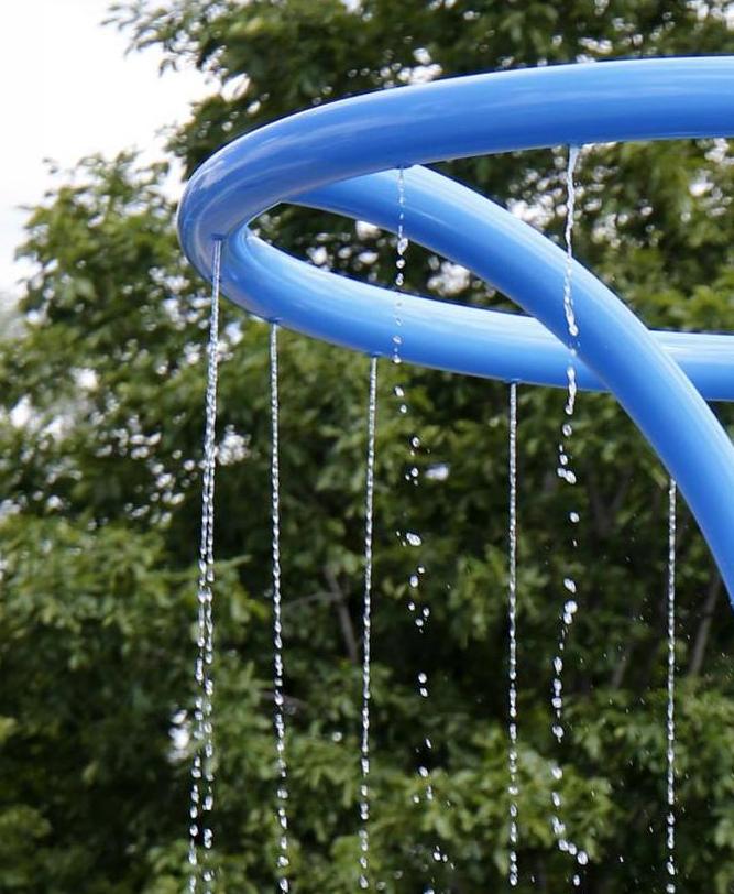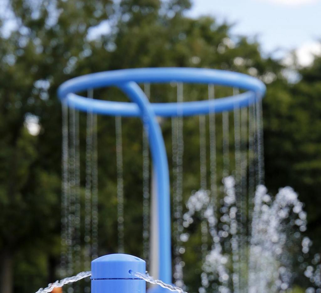 - Un halo de agua llueve desde arriba para que los niñosatraviesen