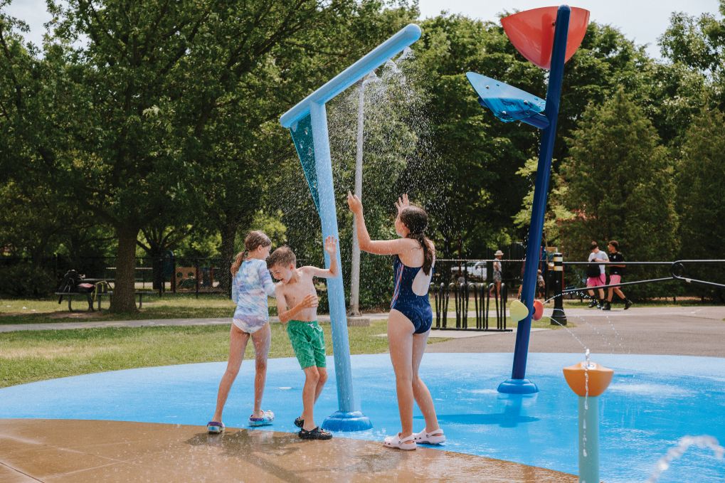 HYPERLINK ofrece una experiencia acuática inmersiva gracias al aspersor elevado bajo el que los niños pueden correr, saltar y jugar.