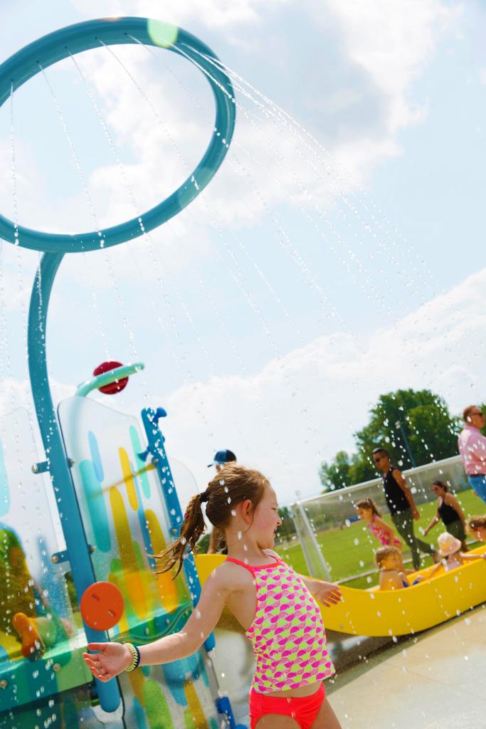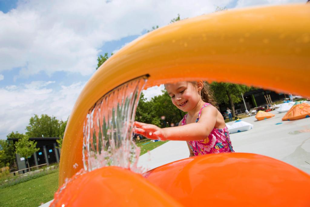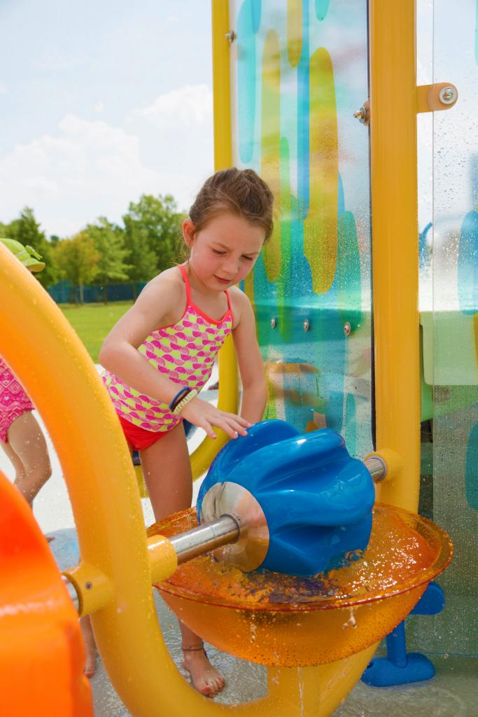 PlayNukNo5 – Splashpad: Las plataformas múltiples promueven el juego en la estructura y alrededor de ella. Con Luna y Water Maze. Aprenda más.