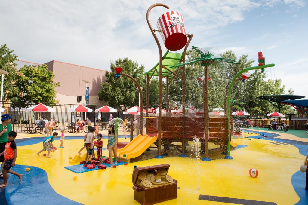 El centro LEGOLAND Discovery Center en Grapevine, Texas, buscaba una forma de atraer a más familias al parque y brindarles una oportunidad de refrescarse durante el cálido verano. El centro instaló un Splashpad® de 4000 ft2 (aproximadamente 372 m2) con una estructura Elevations™ en una zona de césped que no se utilizaba. El tema de la instalación, que fue diseñada a medida, es un barco hundido en La playa de los piratas (“Pirate Beach”). Los juegos están hechos a medida y replican los juguetes LEGO a mayor escala en exactamente los mismos colores Pantone que LEGO utiliza en sus productos. El Splashpad, que permite el acceso con sillas de ruedas, ha incrementado el valor de LEGOLAND Discovery Center. Si bien la estructura fue diseñada pensando en familias con niños de entre 3 y 10 años, este Splashpad emocionante atrae visitantes de todas las edades y los invita a jugar horas y horas. El popular Splashpad brinda al centro una ventaja competitiva única al agregar valor lúdico para familias con niños de todas las edades.