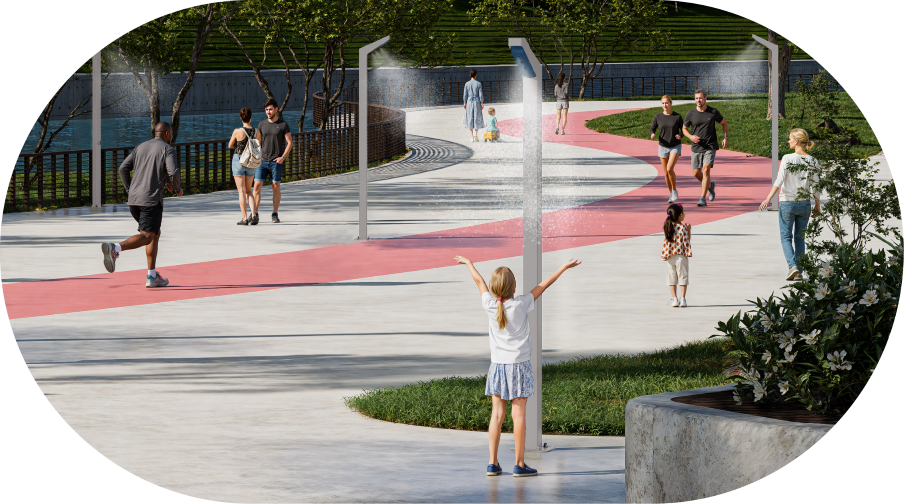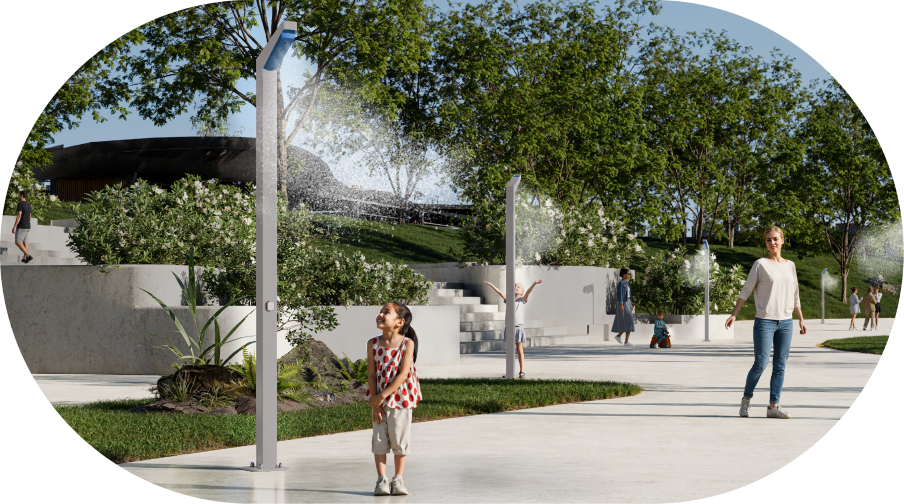 Una fina y refrescante bruma se activa con solo pulsar un botón, proporcionando una refrigeración discreta y eficaz para plazas, paseos y zonas públicas.