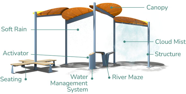 Abrio is a refreshing, easy-to-install cooling solution that transforms high-traffic spaces into a welcoming oasis. It cools, engages, and delights – anywhere people gather.