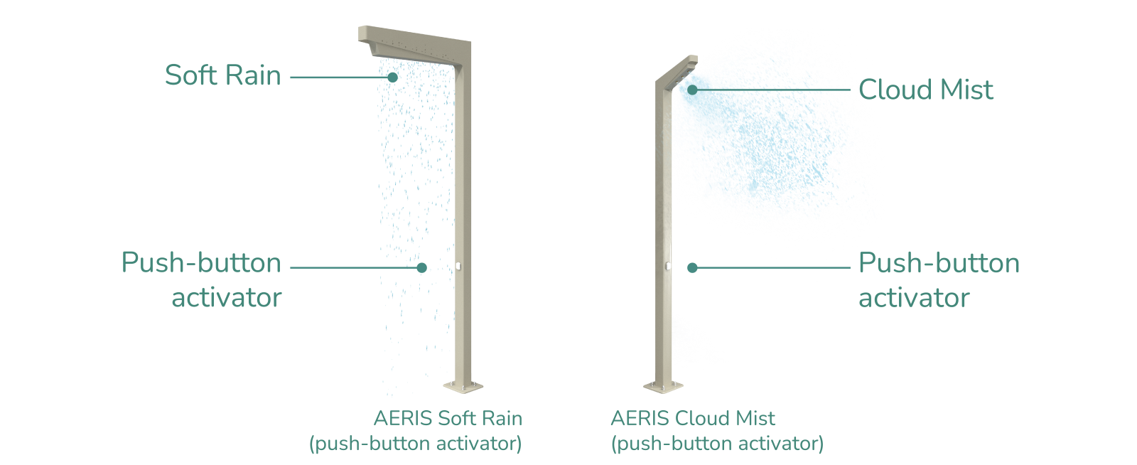 Button-activated cooling with soft, soothing droplets and a sleek, minimalist profile that blends naturally into cityscapes. Reliable even in hard-water regions, Aeris Soft Rain is compact, inviting, and simple to maintain. Ideal for promenades, plazas, and public gathering spaces.