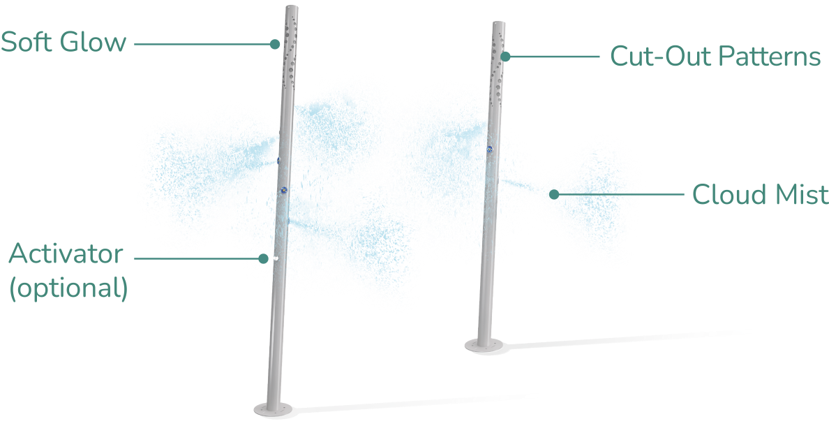 Delivers a light, refreshing, mist that enhances comfort and invites passersby to pause and enjoy the space.
