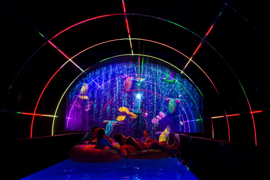 Dream Tunnel™ is an on-water or on-land attraction. The floating experience amplifies a new or existing lazy river while the walk-through experience enhances any site as a stand-alone attraction.