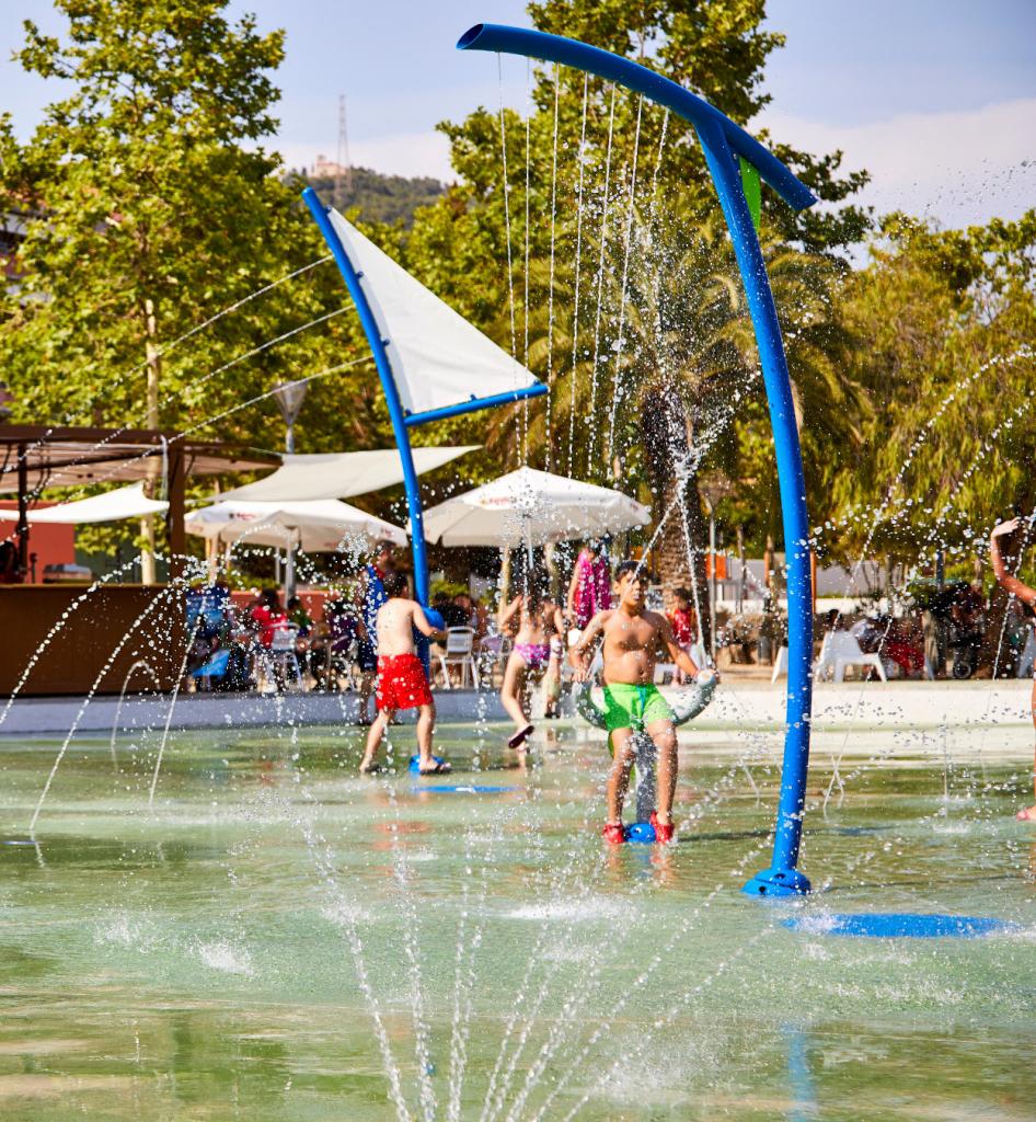 Bamboo Rain. Children cross through the water curtain effect for a dynamic and immersive experience.