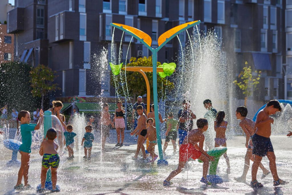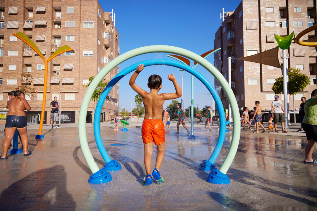 Thanks to the new Splashpad®, the residents of Coslada have a playful aquatic leisure area in the heart of their community. It provides a climate shelter, even on the hottest summer days, while offering refreshing fun for the whole family.
