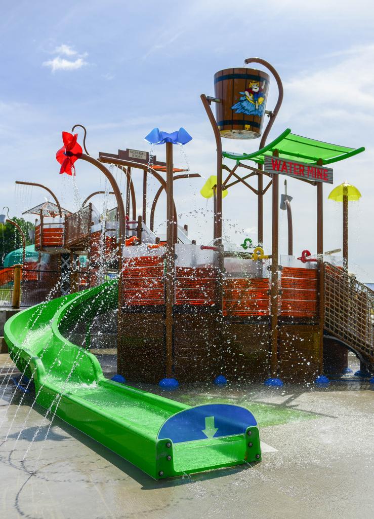 Water Mine Family Swimmin’ Hole is known for its Old West Gold Rush theme attractions as well as a number of water attractions. Wanting to be more appealing to children across all ages, they added ‘Tenderfoot Pond” and ‘Boomtown’. The Splashpad® and multi-level Elevations™ structure decorated in the same theme as the park encourage discovery and imaginative play. With dozens of features, there is something for everyone. The children line up under the giant dumping bucket for an exciting soak. With features low on the ground, even toddlers can cool off and parents are comfortable that their children are safe while they explore the different ways they can trigger and direct the interactive sprays.