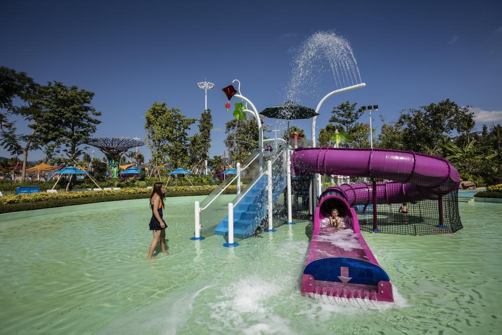 The Wanda Xishuangbanna International Resort is a massive 63-hectare theme and water park located in China’s Yunnan Province. It was designed to reflect the biodiversity and rich Dai heritage of the region. The goal of the separate-gate waterpark was to cater to a wide demographic of users while maintaining the Resort’s botanical gardens theme. With 140 interactive features and 30,000 square feet dedicated to water play, this is the largest Vortex Splashpad® to date, encouraging a wide range of experiences to appeal to all ages – from toddlers to seniors. The adjacent multi-level Elevations™ structure provides active, energetic play for older kids. The Wanda Xishuangbanna Water Park is a sensory delight, full of bright colors, flowing water and endless entertainment opportunities for guests.